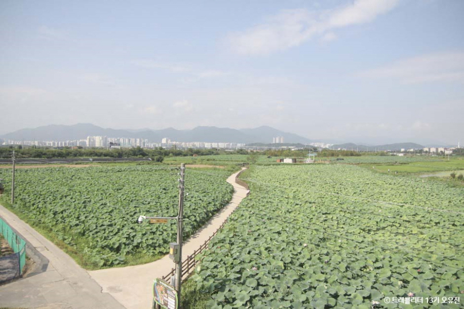 안심 연꽃단지로도 불리는 곳으로 금호강을 끼고 있는 국내 최대 규모의 연꽃단지이다. 연꽃이 피기 시작하는 7월부터 8월까지가 특히 볼만하다. 가남지 코스, 점새늪 코스, 안심습지 코스, 천천 둘레길 코스 등 약 13km에 이르는 총 4개의 산책로가 조성되어 있고, 전부 둘러보려면 약 3시간 정도 소요된다. 곳곳에 다리를 쉬어갈 수 있는 정자와 전체 풍경을 조망할 수 있는 전망대도 있다. 공원으로 조성된 곳이 아니라 전망대와 산책로 이외의 지역은 연 생산 농경지이다.