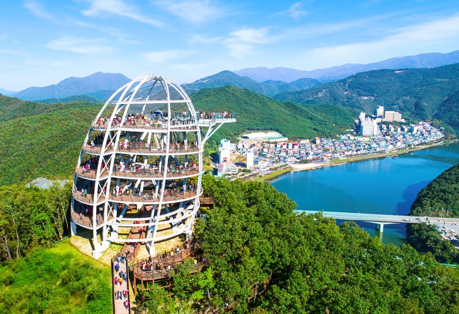 단양군 적성면에 위치한 만천하스카이워크에서는 남한강 절벽 위에서 80~90m 수면아래를 내려보며 하늘길을 걷는 스릴을 맛볼 수 있다. 전망대로 가는 나선형 구간에서는 다각도로 풍광을 감상할 수 있고, 전망대에 보이는 산등성이 너머 드넓게 흐르는 남한강 경치에 감탄사가 절로 나온다. 전망대에 올라서면 시내 전경과 멀리 소백산 연화봉을 볼 수 있다. 말굽형의 만학천봉 전망대에 쓰리핑거(세 손가락)형태의 길이 15m, 폭 2m의 고강도 삼중 유리를 통해 발밑에 흐르는 남한강을 내려다보며 절벽 끝에서 걷는 짜릿함을 경험해볼 수 있다. 전망대 옆으로 980m 길이의 짚와이어, 1,000m 거리의 알파인코스터, 슬라이드 등 체험 시설도 다양하다. 단양강 잔도와 만천하스카이워크를 두루 섭렵할 계획이라면 두 곳의 진입로가 연결된 3번 또는 6번 주차장을 이용하면 더욱 편리하다.