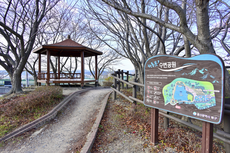 화동못 수변공원은 농업용지로 사용되던 화동못이 주변 개발로 인해 활용성이 없어지자 울산시가 주민들을 위한 휴식공간으로 탈바꿈 시켜 수변공원을 만든 곳이다. 2011년 10억 원의 예산을 들여 총 9,824㎡ 면적에 산책로와 전망대, 생태습지, 물레방아, 간단한 운동을 즐길 수 있는 체육시설, 전기차 충전시설을 구비한 주차장, 그리고 저수지 중앙에 분수 시설을 조성하였다. 자연을 온전히 담은 친환경 산책로를 걸으며 힐링할 수 있다. 화동못 수변공원은 아름다운 휴식공간이자 문화공간으로 주민들의 사랑을 받고 있다.