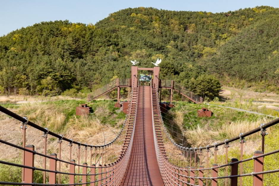 우포늪은 자연 습지인 우포, 사지포, 목포, 쪽지벌과 복원습지 산밖벌로 이루어져 있다. 이 중 산밖벌은 늪을 메워 농경지로 조성한 곳을 다시 습지로 복원한 곳으로 ‘산 밖 굼 턱진 곳의 벌’이란 뜻을 가진 우포늪의 막내이다. 산밖벌은 습지복원지구와 생태관찰지구로 조성돼 있다. 산밖벌과 함께 토평천 하류에 설치된 우포출렁다리는 2016년 11월에 개통, 쪽지벌과 산밖벌을 이어주는 교량으로 우포늪의 새로운 명물로 자리 잡고 있다. 가을바람 맞으며 탐방로를 거닐다 보면 산밖벌 끝머리 제방 쪽 토평천 하류에 설치된 길이 98.8m, 보행 폭 2m의 우포출렁다리(창녕군 이방면 옥천리 756번지)가 나온다. 우포늪에는 둘레길이 잘 조성되어 있는데, 우포출렁다리와 산밖벌까지 탐방하는 9.7㎞, 3시간 30분 코스 등 다양하게 구성되어 있다.