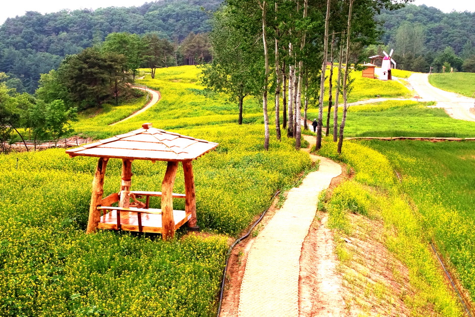 다양한 꽃밭, 전망대, 산책로, 주막, 깡통열차