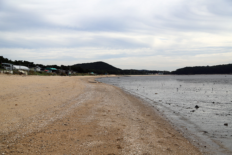 용유도해변은 육지와 가까운 쪽은 흙과 잘게 부서진 조개밭을 이루고, 해면 가까이 갈수록 모래사장이 나타나 산책하기도 좋다.