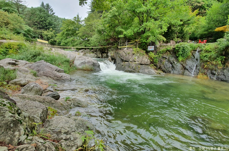 칼봉산이다. 시원한 청평댐을 지나 남이섬과 자라섬으로 이루어진 가평읍까지의 달리는 길은 드라이브코스로 최적이며 가평읍에서 경반리 경반계곡에 이르는 4km는 고향길 정취를 맛볼 수 있다. 기암괴석과 잣나무 숲 사이로 흐르는 경반계곡에 위치한 칼봉산 자연휴양림은 황토와 통나무로 이루어진 숲 속의 집, 시방댐으로 생긴 경반호수, 밤나무와 잣나무 숲 사이에 생긴 산책로는 도시생활에 병든 심신을 치유하는 치유장으로 충분하다.