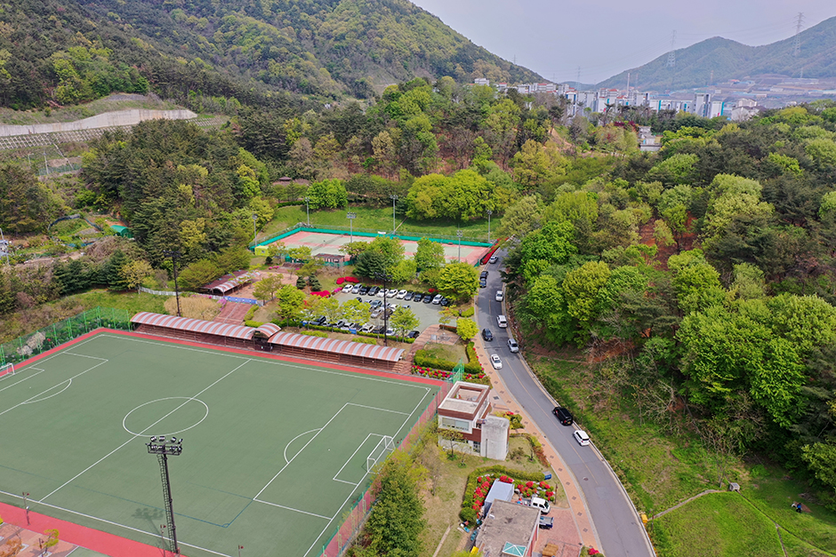 산책로, 어린이 놀이터, 야외무대, 야생화 공원, 축구장, 테니스 코트, 배드민턴장, 농구가 가능한 다목적 운동장