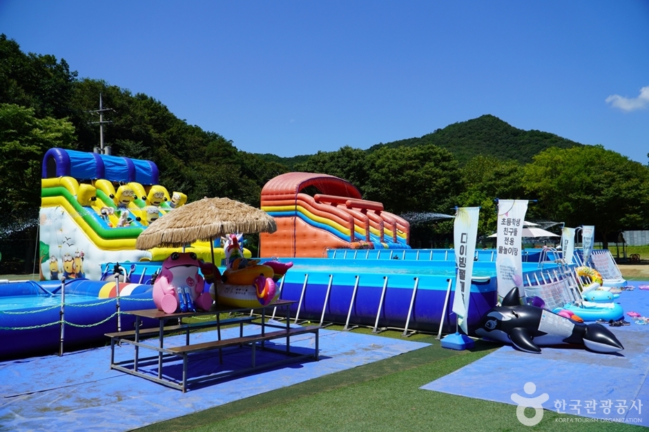 여름에는 대형 에어바운스와 워터슬라이드가 있는 수영장이 펼쳐져 평상에 백숙 한 세트 시켜 놓고 가족, 친구들과 피서를 즐기는 사람들로 북적인다.