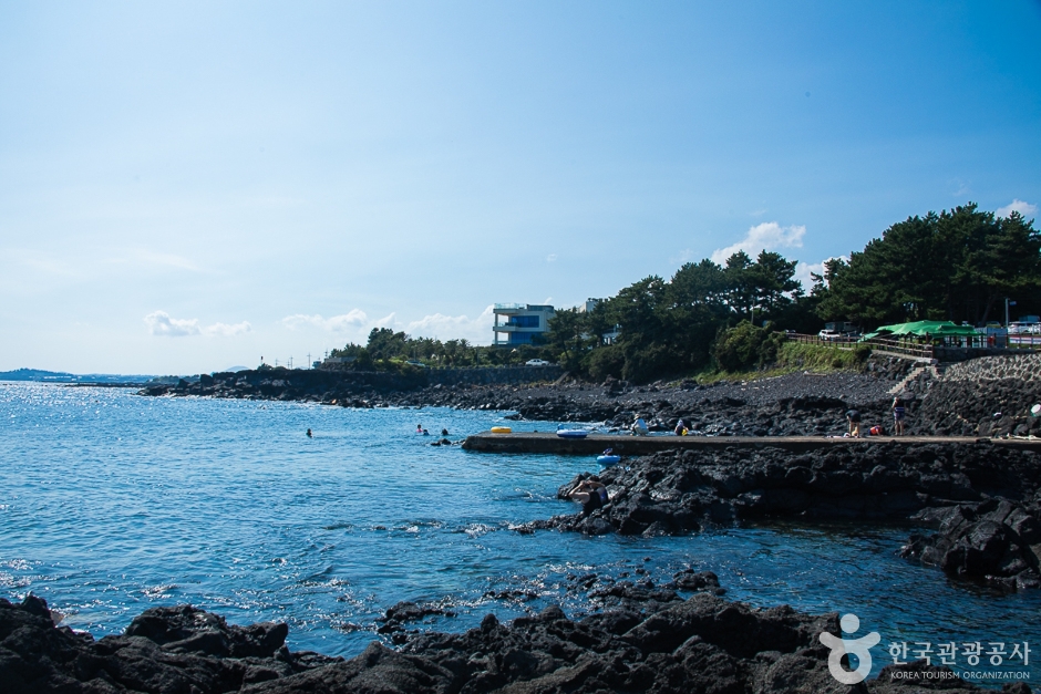 바다를 향하여 높이 30m, 길이 200m의 기암절벽이 오랜 세월동안 쉬지 않고 밀려오는 파도를 감싸안은 2개의 자연동굴을 보노라면 세속을 떠난듯한 다른 세계, 때 묻지 않은 자연에 대한 감동을 느낄 수 있다. 해안절벽을 따라 2km의 산책길, 전망대, 간이휴게실, 기초체력단련시설, 화장실 등이 마련되어 있다. 갯바위 낚시터로, 조용한 휴식처로, 연인들의 데이트 코스로도 유명하다. 주변에 신영영화박물관·표선해수욕장·섭지코지 등 관광명소가 있다.
