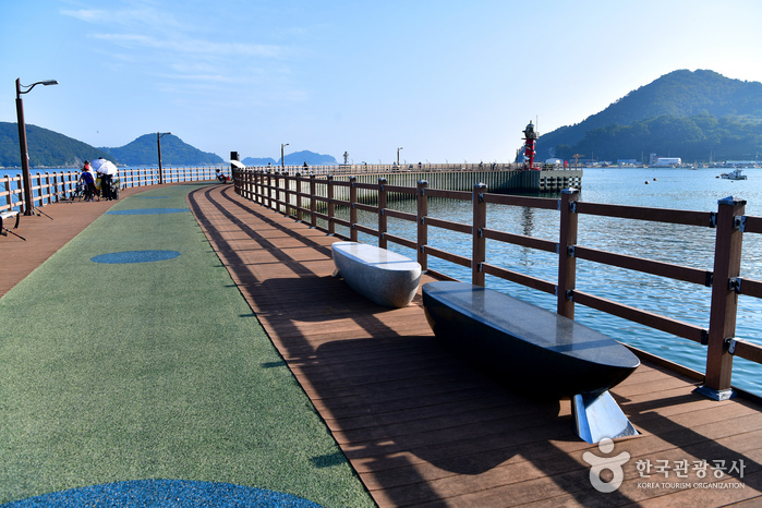 구조라 수변공원은 방파제 위에 마련된 공원으로, 방파제가 깔끔하게 정리되어 있을 뿐만 아니라 곳곳에 세워진 조각 작품이 눈길을 끈다. 해변이 계단으로 이루어져 바닷물에 발을 담글 수 있다는 것도 구조라 수변공원의 특징이다. 데크 길이 널찍하고, 벤치도 곳곳에 마련되어 있어 걷다가 언제라도 휴식을 취할 수 있다. 멀리 보이는 등대는 독특하게도 로봇 모양을 하고 있다. 넓게 펼쳐진 평지가 있고, 주차장도 넓어 이곳에서 낚시를 즐기는 이들도 많으며 가족 단위로 와서 휴식을 취하곤한다. 하지만 텐트 설치나 취사는 금지하고 있으니 주의해야 한다.
