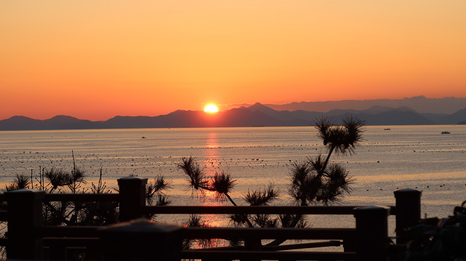 해맞이공원은 고성군의 일출 행사가 열리는 곳이다. 호수처럼 잔잔한 아침 바다를 뚫고 솟아오르는 붉은 태양을 감상하기 안성맞춤이다. 공원에는 트레이드마크인 대형 공룡 조형물과 아담한 정자, 유리 전망대 그리고 조그만 산책로가 조성되어 있다. 날씨가 좋으면 거제도와 부산 가덕도까지 보이는 전망대에는 카메라를 올려두고 360도로 회전해서 촬영할 수 있는 목재 거치대가 준비되어 있다. 오른쪽으로 커다란 크레인이 있는 조선소 풍경도 이색적이다. 시원한 바다를 끼고 아름다운 해안 도로를 만끽하는 바이커들의 자유로운 모습도 자주 눈에 띈다.