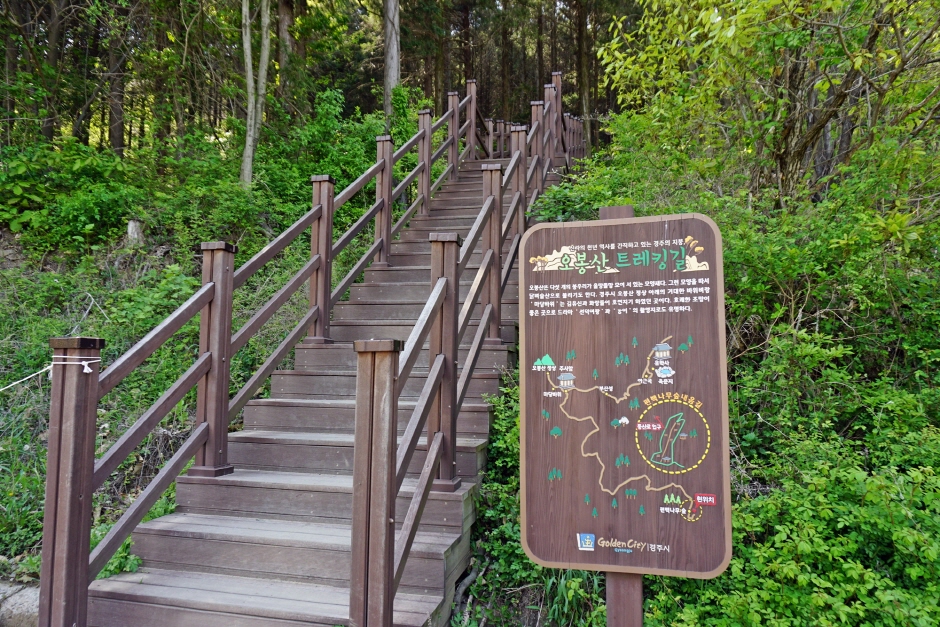 편백숲내음길은 경주의 서쪽 건천읍 오봉산의 초입에 위치한 편백나무 산책길로 오봉산 트레킹길로 이어진다. 500m 가량의 길지 않은 편백나무 숲길은 나무데크와 경사지지 않은 흙길로 조성되어 있어 누구나 부담 없이 왕복 30분정도 산책할 수 있는 장소이며, 더 걷기를 원하면 숲 주변으로 이어진 등산로를 따라 산책할 수 있다.