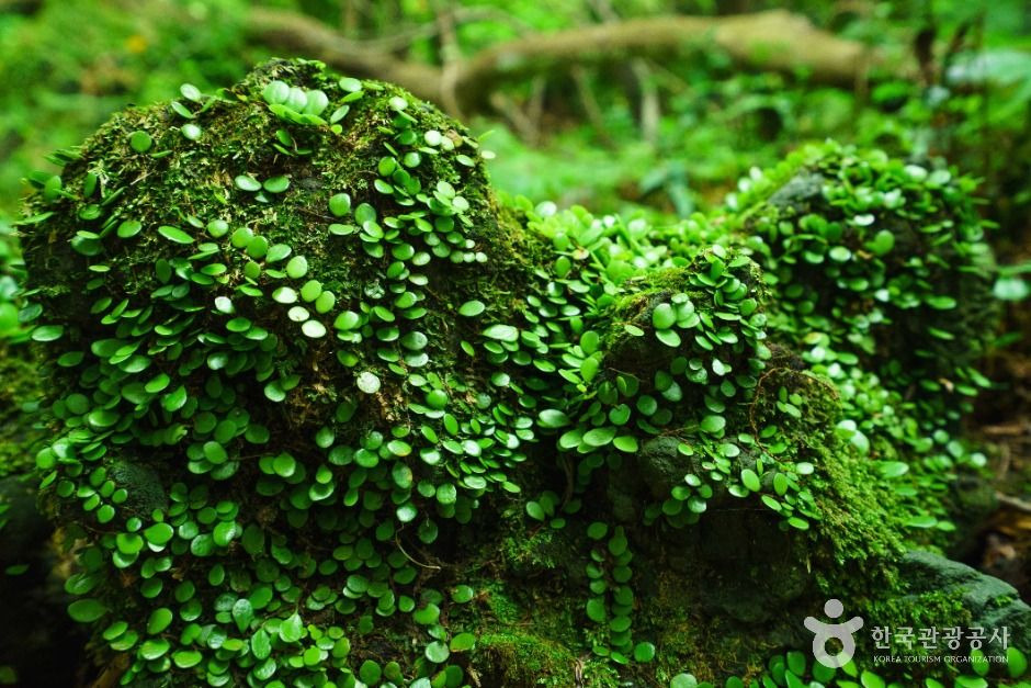 곶자왈은 제주도에 위치한 특정한 숲 지대를 일컫는 말로 용암이 분출되어 흐르며 남긴 현무암 사이로 식물이 함께 살면서 형성해 놓은 원시림이다. 용암이 형성해 놓은 공기통로와 요철형의 지형적 특성 때문에 같은 곶자왈 내에서도 다른 기후 환경이 형성되어 남방계 식물과 북방계 식물이 함께 관찰되는 독특한 생태계를 자랑한다. 흙이 아닌 용암 지형 위에 다양한 동식물이 자생하는 이곳은 제주만의 독특한 원시 생태를 잘 보여준다. 양치식물과 거대한 나무의 뿌리가 얽힌 풍경 안으로 들어서면 시간과 공간이 바뀌는 듯한 경험을 하게 된다. 환상숲 곶자왈공원은 1시간마다 숲 해설 투어가 진행되며 사전 예약이 필요하다. 그리고 이곳은 신비로운 분위기로 여러 뮤직비디오 촬영지로 활용된 곳으로 대표적으로 2015년도에 발매된 에프엑스 <4 walls> 뮤직비디오 촬영지의 배경이 된 곳이다.
