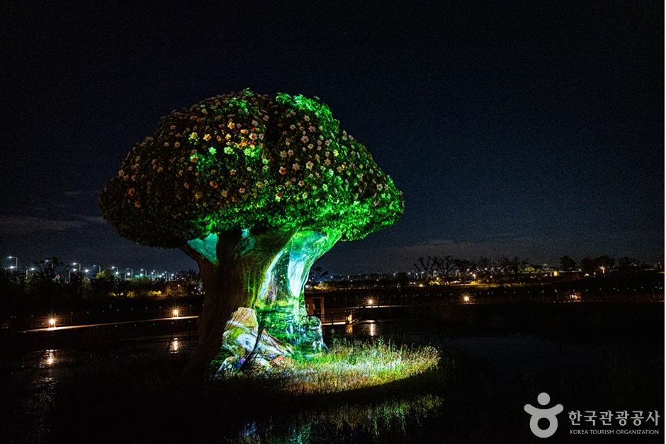 특히 야간관광 활성화를 위해 설치된 경관조명 및 미디어 공간이 유명한데, 특별한 밤의 추억을 만들 수 있다. 북쪽에서 날아온 꽃씨가 무궁화와 함박꽃을 함께 피워내는 하나그루로 자라고, 그 꽃잎이 흩날리며 화합과 희망의 메시지를 전달한다는 내용으로 메타세쿼이아길의 [희망의 꽃씨]를 출발점으로 맥동, 하나그루, 하나의 메아리, 화합의 길, 평화의 꽃가루로 구성되어 있다.