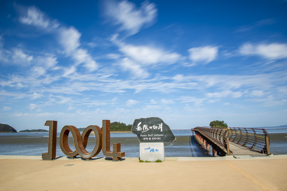 무한의 다리는 자은도 둔장해변 앞에 놓인 보행교로, 구리도와 고도, 할미도를 차례로 연결한다. 총 길이 1,004m에 폭 2m이다. 무한대(∞)를 내포하는 8월 8일 ‘섬의 날’을 기념하고, 신안의 지속적인 발전을 희망한다는 의미를 담았다. 물이 빠질 때에는 세계 5대 갯벌에 속하는 서남해 갯벌과 다양한 생물들을 구경할 수 있고, 물이 들어올 때는 바다 위를 걷는 듯한 신비로운 기분도 느껴볼 수 있다.