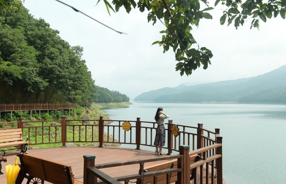 숲과 조화된 호수 경관을 즐길 수 있도록 개설한 1.6km의 수변 데크길은 남녀노소 누구나 편하게 걸을 수 있도록 만들어져 한국관광공사의 대한민국 대표 걷기 길과 전라남도 추천 관광지로 선정되었다. 호숫가 가파른 절벽을 따라 세운 나무 데크 다리에서는 한 폭의 그림처럼 아름다운 탁 트인 장성호의 수려한 경관을 한눈에 감상할 수 있다. 다리 한쪽에선 숲의 나뭇잎끼리 스치는 소리를, 다른 한쪽에선 호수의 물이 절벽을 때리는 소리를 들을 수 있는 최적의 힐링 스폿이다. 호수를 끼고 한참 더 걸으면 호젓한 기분을 한껏 느낄 수 있는 숲길이 반겨준다. 트레킹 마니아들이 아니더라도 소나무와 굴참나무를 비롯한 각종 나무 사이로 때론 직선으로, 때론 지그재그로 펼쳐진 산속 오솔길을 자박자박 걸으며 한가한 정취를 만끽할 수 있다. 오르막길과 내리막길이 반복돼 지루할 새도 없다. 또 가파르지 않아 위험하지 않고 관절에도 무리가 없다. 운이 좋으면 굴참나무 도토리를 먹고사는 다람쥐를 만날 수 있다.
