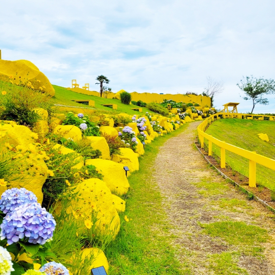 바람의핫도그 본점 뒷편에 위치한 노랑버덩은 사장님께서 거제 여행객들에게 소소한 여행의 즐거움을 찾을 수 있길 바라는 마음으로 손수 가꾼 정원이다. 노랑버덩이라는 명칭답게 입구부터 노란색의 향연이 펼쳐진다. 의자와 울타리, 바위 모두가 노란색으로 되어 있으며, 곳곳에 다양한 포토존이 마련되어 있다. 또한, 수국이 피어나는 시기에는 수국 포토존 떠오르고 있다.
