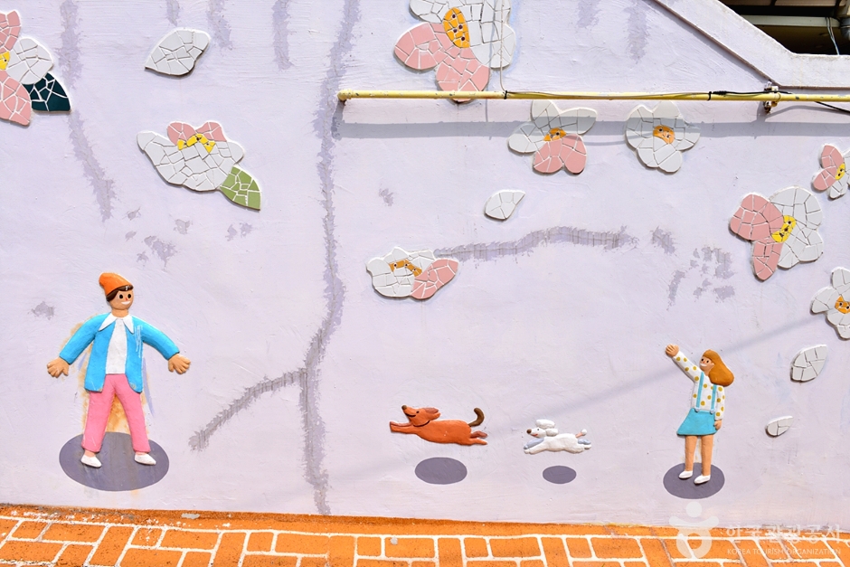 마을 골목골목을 채운 그림들은 페인팅이 아닌 타일 등으로 벽과 바닥을 꾸며 이 마을만의 독특한 풍경을 만든 것은 물론 변색되지 않고 유지와 관리가 수월하도록 했다.