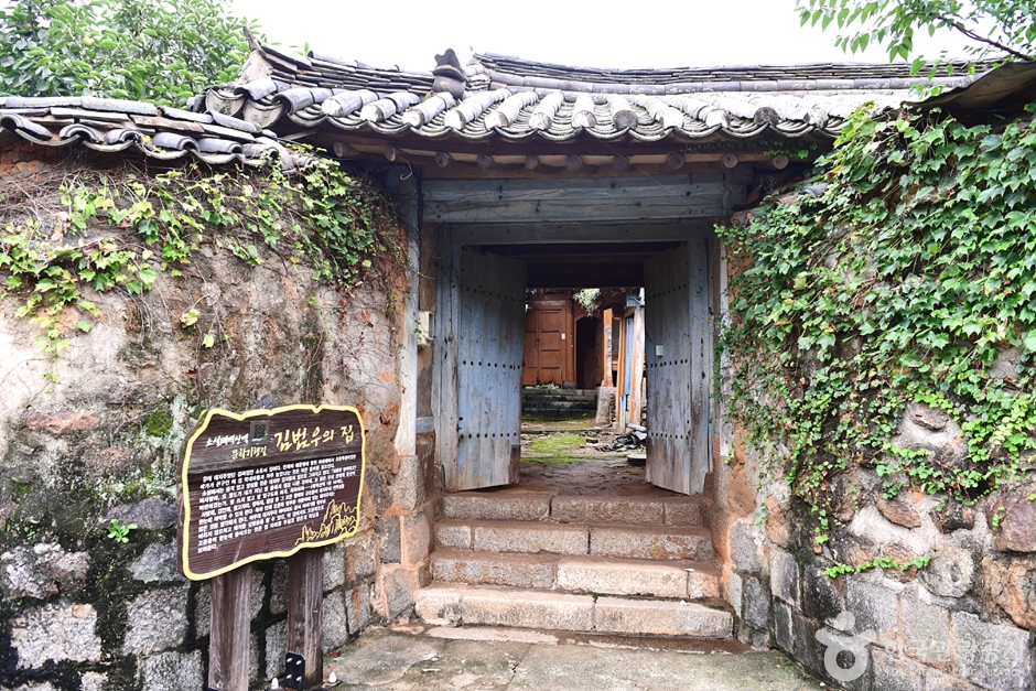 소설가 조정래가 어릴 때 살던 동네의 집으로 원래 대지주였던 김 씨 집안 소유의 집이다. 안채의 대문옆에 딸린 아래채에서 초등학생이었던 작가가 친구인 이 집 막내아들과 자주 놀았다는 추억의 장소이다. 소설태백산맥에서는 품격 있고 양심을 갖춘 대지주 김사용의 집으로 그려지고 있다. 김사용은 김범우의 아버지이다. 사랑채, 겹안채, 창고자리, 장독대, 돌담 등 집의 규모가 대지주의 생활상을 잘 파악할 수 있게 한다. 특히 한채 오른쪽 앞부분 귀퉁이에 있는 돼지우리는 많은 것을 생각하게 한다. 아무리 대지주라 하더라도 음식 찌꺼기를 함부로 버리지 않으려고 돼지를 길렀음을 알 수 있다. 소설에 등장하는 대저택인 현부잣집이 당시 신흥부호가 살았던 일본식 주택양식이 반영된 대저택 형태를 하고 있는 반면, 이 저택은 전통 한옥양식을 하고 있다.