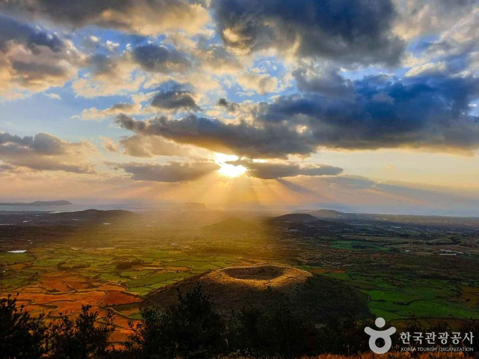 위치 상 동쪽 끝에 있어서 좋은 날씨에는 멀리 성산일출봉과 우도까지 전망이 가능하며 주변의 다랑쉬오름과 지미봉도 볼 수 있다. 세 개의 분화구를 중심에 두고 오름 한바퀴 산책을 하는데 걸리는 시간도 1시간 내외로 주변 풍경을 즐기기에 최적의 조건이다.