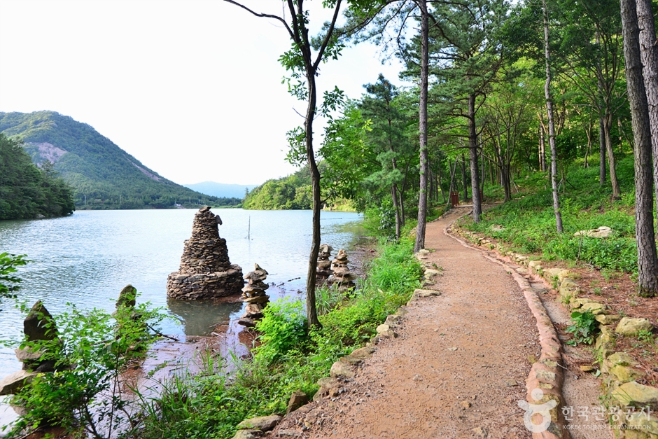 편백 숲, 대나무 숲. 메타세쿼이아 길, 단풍나무 길 등 다양하고 아름다운 숲 산책로와 수변 산책로가 조성되어 있어 보성 인기 여행지로 떠오르고 있는 곳이다. 둑에서 데크로 시작하는 둘레길은 약간의 오르막길과 돌길을 빼고 길이 거의 평지여서 편안한 산책을 즐길 수 있다. 데크길에서 둘레길을 걷다 보면 물가와 숲 가장자리에 서있는 돌탑들과 가을이면 핑크뮬리밭이 파란 하늘과 초록의 나무와 어우러져 몽환적인 분위기를 자아내며, 조용한 산책로에 심어져 있는 다양한 수종과 야생화들이 피어나는 호수 둘레길은 몸과 마음을 치유할 수 있는 치유의 공간으로 일상의 피로를 잊을 수 있는 경험을 하게 해준다.