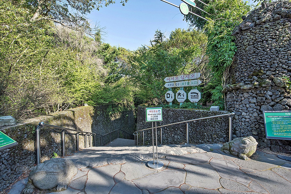 미천굴은 학술적, 관광적, 문화적 가치를 간직한 중요한 자원이며, 주변의 맑은 공기와 깨끗한 물, 푸른 들판, 오름 등을 간직하고 있다. 특히 원초적인 암흑의 지하 공간은 인간의 본질과 미래에 대해 사색하고 추상하는 창조의 공간이 된다. 도시에서는 맛볼 수 없는 절대 자연미를 느낄 수 있는 공간으로, 총 1,700m 중 365m 구간을 개방하고 있다. 미천굴의 입구는 천정함몰에 의해 형성되었으며 비교적 천정 두께는 얕은 편이다. 동굴을 형성한 현무암류는 동굴의 지표면상에 유동 방향을 나타내는 로피 구조가 발달하였다. 굴에서 빠져나오기 전, 출구 오른쪽에 하트 모양의 포토존이 마련되어 있다. 미천굴은 SBS 예능 ‘런닝맨’ 촬영 장소로도 유명하다.