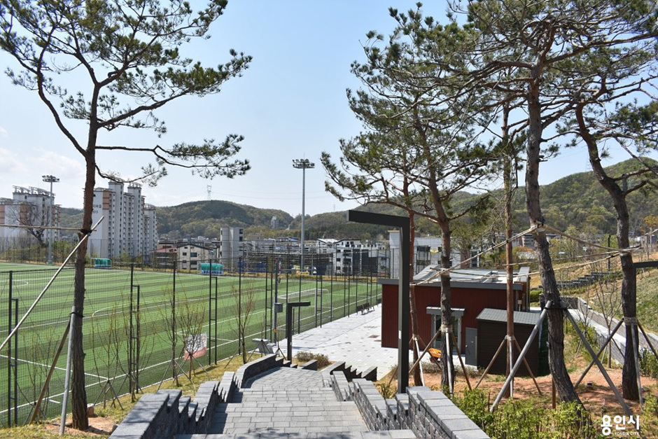 양지 IC 바로 옆, 경기도 용인시 처인구에 위치해 있다. 인근 아파트 단지와 연계하여 남녀노소 누구나 운동, 여가, 휴식을 즐길 수 있는 다목적 체육공원이다. 계류 연못, 테니스장, 놀이터, 화계, 축구장 등의 체육시설을 구비하고 있으며, 특히 마음껏 흙을 밟으며 놀 수 있는 모래 놀이터는 도시에 사는 어린이들에게 친환경적인 놀이 기회를 제공한다. 또한 여성 축구회, 테니스클럽 등이 결성되어 시민들의 건강한 여가를 위한 공간으로 자리 잡고 있다. 더불어 꽃잔디가 곱게 핀 산책로를 부담 없이 거닐어 볼 수 있는, 사계절이 아름다운 체육공원이다.
