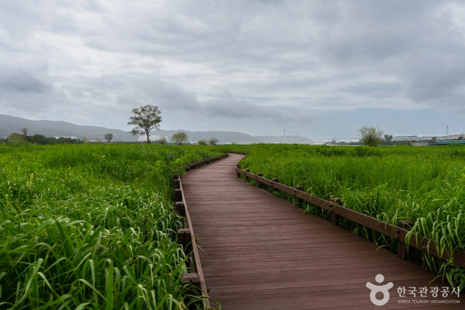 태화강을 따라 울산 남구, 북구, 중구에 걸쳐 조성된 태화강 억새군락지는 가을이면 온통 은빛 물결이 출렁이는 가을 산책코스로 변모한다. 특히, 북구 명촌교 아래에서 아산로 양정 1교 부근의 억새밭은 12만 6,055㎡로 가장 넓은 면적을 자랑한다. 보통 억새군락지들은 산에 올라 볼 수 있는데, 태화강 억새군락지는 자전거도로와 산책로를 따라 평지를 걸으며 즐길 수 있다. 산 위의 억새군락지는 해가 지기 전에 하산을 서둘러야 해서 그 진가를 보기 어렵지만, 이곳에서는 강변의 넓게 펼쳐진 은빛 억새가 황금색으로 물들어 반짝이는 광경을 눈앞에서 감상할 수 있다. 도심에 위치해 있어서 접근성이 좋으며 억새군락지 데크길 곳곳에 조형물과 벤치가 있어 편리하다.