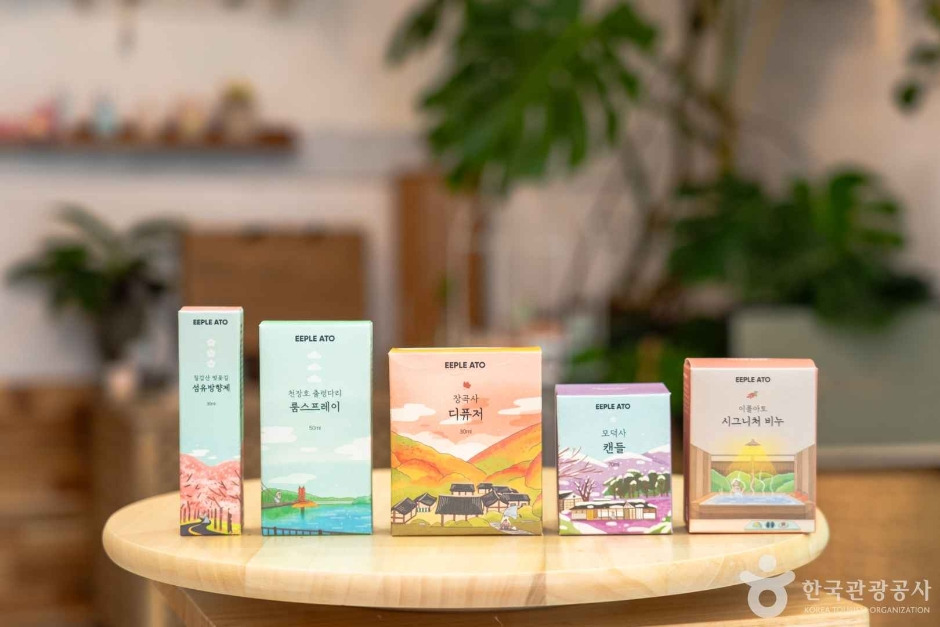 이플아토는 친환경 재료를 활용해 청양의 향기를 만든다. 이플아토에서 생산한 제품은 인공색소, 인공향, 방부제가 들어가지 않는다. 아토피로 고생하는 아이를 위해서 작은 공방으로 시작한 사업이 지금은 으뜸두레로 주민사업체로 성장했다. 온오프라인을 통해 핸드메이드 비누, 디퓨저, 캔들, 세탁세제 등을 판매하고 있다. 청양군 특산품인 구기자, 맥문동, 표고버섯, 밤 등을 활용하여 비누와 인센스를 만들어 보는 원데이클래스도 운영하고 있다.