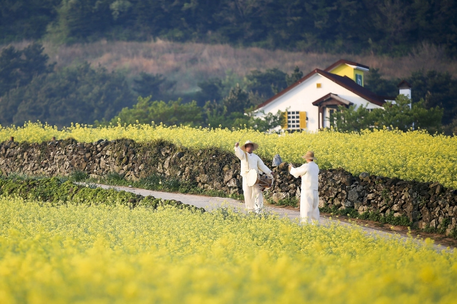 구불구불한 돌담이 매력적인 이곳은 4월 중순이면 노란 유채꽃이 만개하고, 9월 하순에서 10월 초 사이에는 코스모스가 돌담 사이로 피어나 푸른 바다와 어우러져 그림 같은 풍경을 만들어낸다. 노란 유채꽃밭이 펼쳐진 황톳길 옆에는 송화가 소리 공부를 하던 초가가 복원되어 있다. 또한, ‘서편제 쉼터 주막’ 앞마당에는 관광객을 위한 테이블이 마련되어 있어, 막걸리를 마시며 주변 경치를 감상할 수 있다.