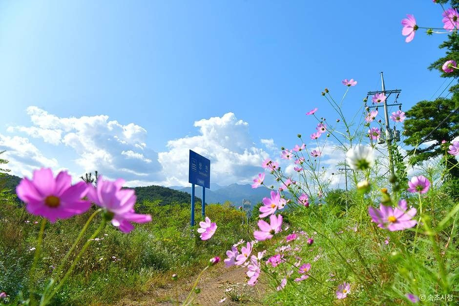 강원도 속초와 양양 사이를 흐르는 쌍천 하류에 조성된 자연 탐방로이다. 쌍천교에서 하도문 마을까지 약 1.2㎞에 걸쳐 이어진 코스모스 길이 유명하다. 자연 그대로인 전원 풍경을 만끽하며 호젓하게 산책을 즐기기 좋다. 코스모스길은 흙길에 야자매트가 깔린 것 외에는 인위적인 시설물이 거의 없다. 곧게 뻗은 산책로 너머로 설악산이 금세라도 닿을 듯 아스라이 펼쳐지며, 때때로 울산바위가 빼꼼히 고개를 내밀며 혼자 걷는 길에 동행이 되어준다. 쌍천 코스모스길은 설악해맞이공원에서 도보 거리에 있어 함께 둘러보기 편하다. 차량으로 움직일 경우 쌍천교 다리 부근의 주차시설을 이용하면 된다.