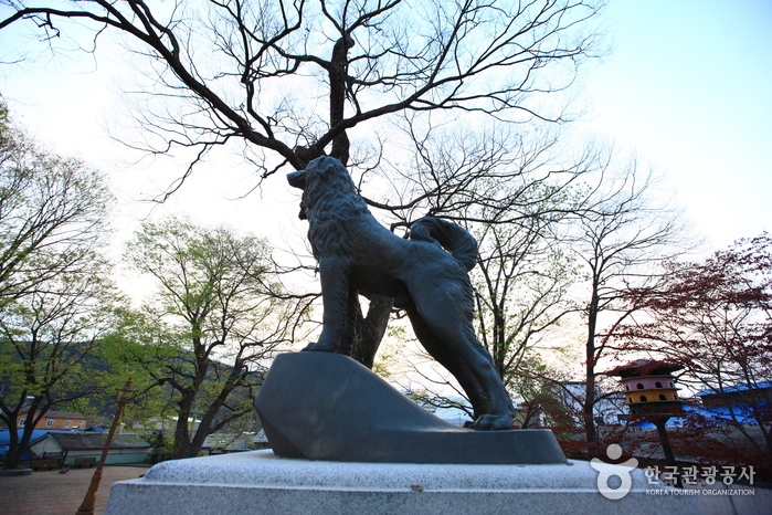 후에 동네 사람들이 주인을 살린 개의 충성심을 후세에 기리기 위해 의견비를 세웠으나 오랜 세월의 풍파로 글씨가 마멸되어 알아볼 수 없게 되었다. 지금의 의견비는 1955년 4월 8일에 세운 것으로 비각을 세우고 주위를 단장하여 원동산공원을 만들고 일주문까지 세웠다.