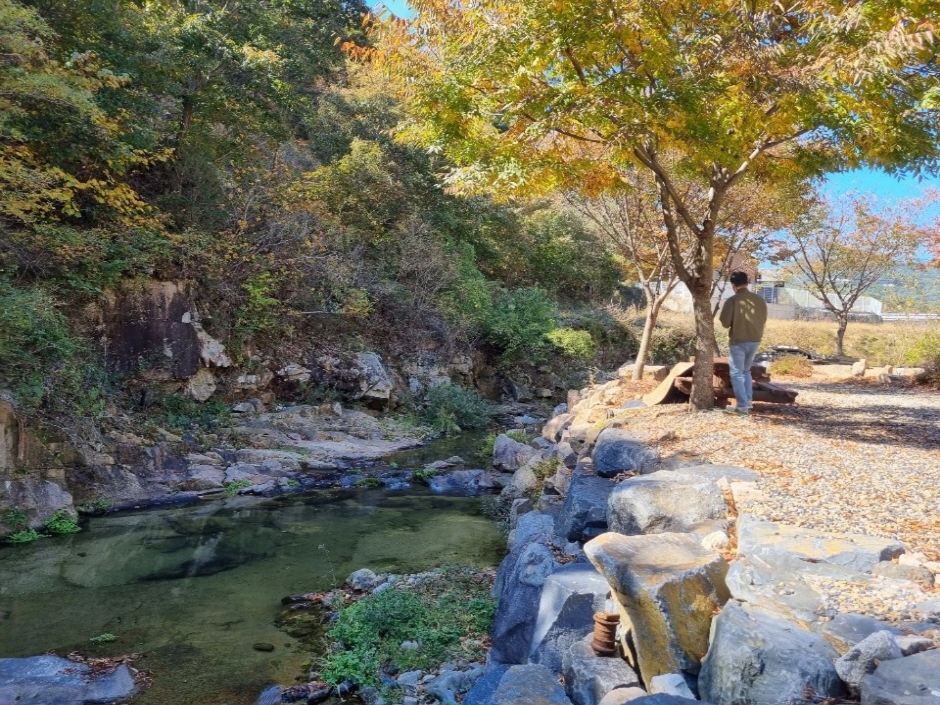 조팝꽃피는마을은 천태산에 이르는 산지지역에 있어 주변 경관이 멋지고, 산림자원이 풍부하여 마을이 깨끗하고 맑은 기운이 솟아나고 있다.주로 콩과 인삼을 농사짓고 있으며 이를 가지고 인삼콩피자를 만드는 등 다양한 자연푸드체험을 진행하고 있으며 반딧불, 수리부엉이, 소쩍새 등 다양한 천연기념물 등 깨끗한 자연 속에서 생태체험도 할 수 있다. 또한 이곳은 농촌인성학교로 지정되어있다.