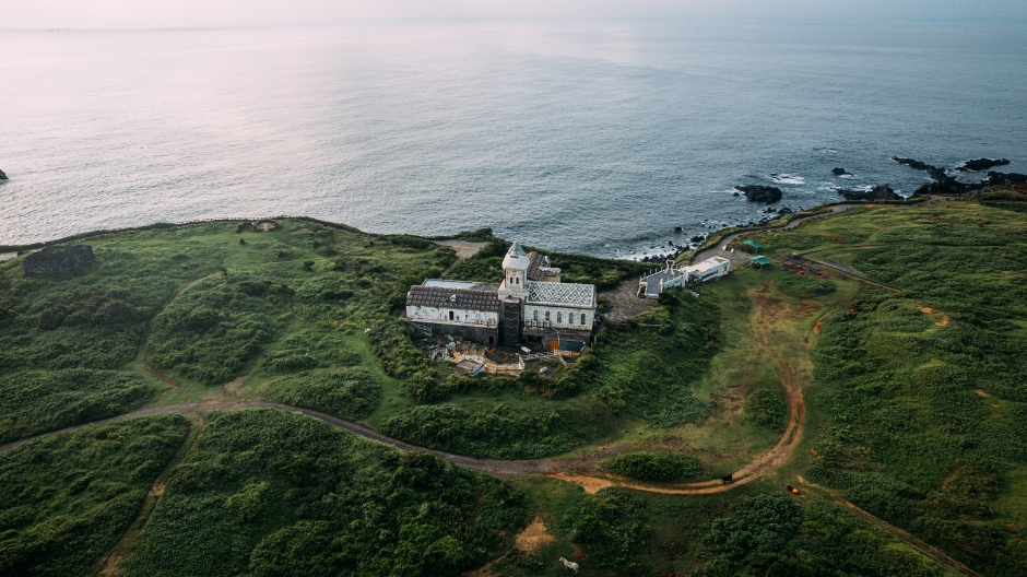 제주 동쪽의 대표적인 명소로 붉은 화산송이로 이루어진 기암괴석들과 해안절벽이 절경을 이루는 곳. 섭지코지의 아름다운 자연과 차갑고 어두운 톤의 CG, 그리고 안도 타다오의 모더니즘 건축물이 어우러져 신비로운 장면으로 만들어졌다. 봄에는 노란 유채꽃이 절벽 위에서 장관을 이룬다.