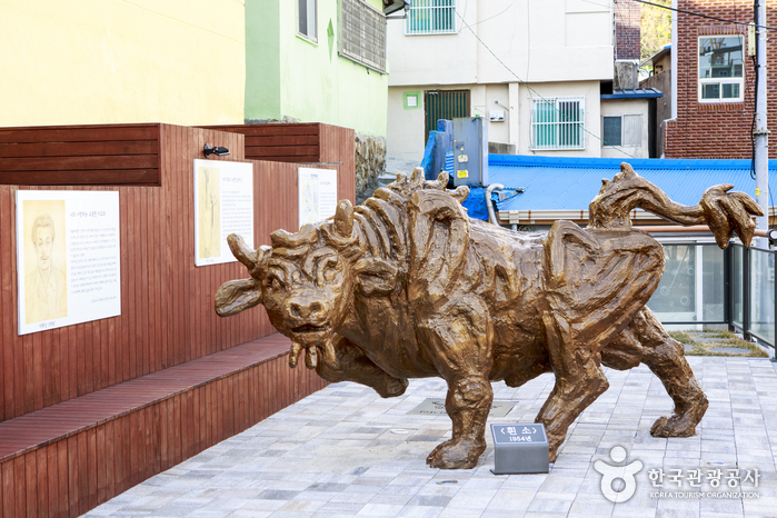 그러나 그림에 대한 열정만은 사그라지지 않았다. 그는 광복동 일원의 밀다원, 금강다방, 그리고 부둣가의 술집들을 전전하며 부산으로 피란온 예술가들과 친밀한 교분을 나눴다. 비록 담뱃갑 은박지에 그림을 그리며 끼니를 해결하는 가난한 화가 신세였지만 이곳에서〈범일동풍경〉이라는 명작을 탄생시킨다. 범일동 553번 길주변에 조성된 이중섭거리에는 그의 고단했던 삶과 치열했던 예술 세계가 파노라마처럼 펼쳐져 있다. 희망 100 계단 끝 이중섭전망대에 이르면 당시 이중섭이 아내 마사코에게 보낸 절절한 편지를 읽을 수 있다.