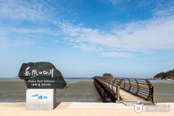 무한의 다리는 자은도 둔장해변 앞에 놓인 보행교로, 구리도와 고도, 할미도를 차례로 연결한다. 총 길이 1,004m에 폭 2m이다. 무한대(∞)를 내포하는 8월 8일 ‘섬의 날’을 기념하고, 신안의 지속적인 발전을 희망한다는 의미를 담았다. 물이 빠질 때에는 세계 5대 갯벌에 속하는 서남해 갯벌과 다양한 생물들을 구경할 수 있고, 물이 들어올 때는 바다 위를 걷는 듯한 신비로운 기분도 느껴볼 수 있다.