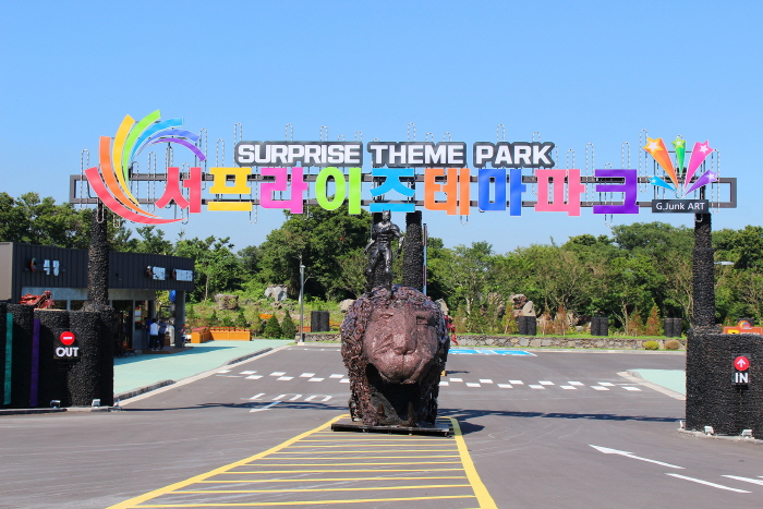 서프라이즈테마파크는 문화예술계에서 주목하고 있는 재활용 소재를 활용한 장인정신의 숨결과 혼이 깃 든 신비로운 정크아트 (Junk Art 폐품으로 만든 입체 예술작품)를 만나볼 수 있는 곳이다. 재활용 소재로 만들었으나 디테일과 크기는 그 어떤 작품 못지않은 정교함과 웅장함을 자랑한다.【SBS 세상에 이런 일이】에 방영된 깜짝 놀랄만한 세계수준의 예술작품을 생동감 있게 구현한 영화 속 히어로들 그리고 애니메이션 주인공들과 함께 가까이에서 만날 수 있다. 다양한 크기와 형태로 작품화된 캐릭터를 통해 그들을 직접 만나고 체험해봄으로써 흥미와 감동으로 아 동과 청소년들의 꿈을 키우고 용기와 진취적 기상을 심어줄 수 있는 계기가 될 것이다. 50,000여 평의 넓은 대지 위에 펼쳐진 500여 점의 작품과 주변 풍경의 파노라마는 전 지역이 포토존으 로 활용될 수 있어서 가족 단위의 나들이를 통해 추억의 시간을 간직할 수 있으며, 곶자왈둘레길 생태체 험 산책을 통해 삼림욕을 함으로써 웰빙을 구가할 수 있다. 또한 단체 학생들의 체험 활동을 통해 꿈과 끼를 키우는 감성 교육의 장으로 활용될 수 있다.