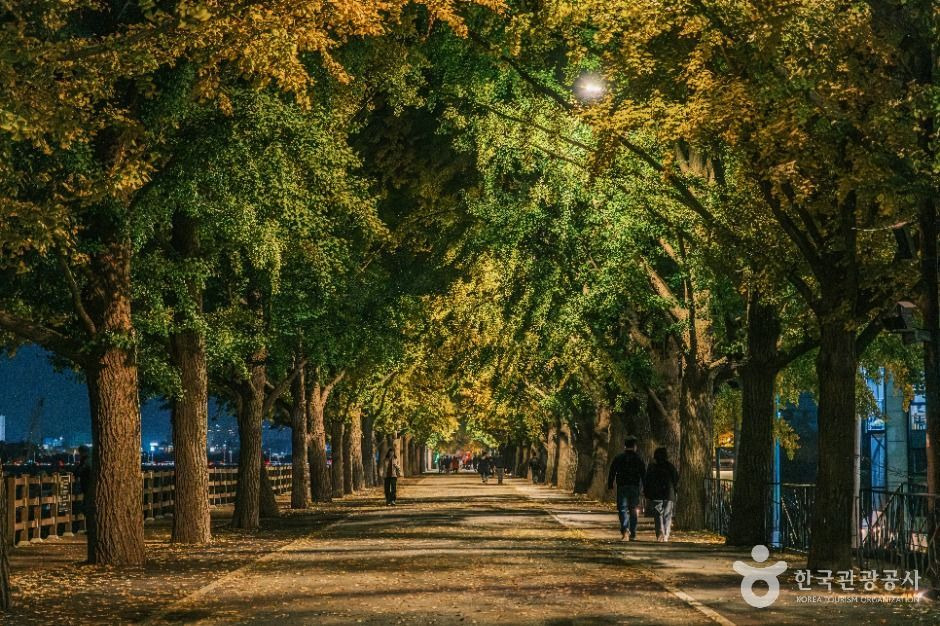 곡교천 은행나무길은 ‘전국의 아름다운 10대 가로수길’로 선정된 충남 아산의 명소다. 현충사 입구의 곡교천 충무교에서부터 현충사 입구까지 2.2㎞ 길이의 도로에 조성되어 있다. 350여 그루의 은행나무가 일제히 노란빛을 내는 가을이면 평일에도 많은 인파가 몰려들고, 휴일이면 찾아오는 사람들로 인산인해를 이룬다. 현충사를 찾는 관광객에게는 꼭 들러야 하는 필수 여행코스다. 청명한 가을 하늘을 배경으로 한 노란 은행나무길은 가을 정취를 만끽하고, 사진으로 남겨두기에 적격이다. 봄이면 유채꽃이 피어 또 다른 멋을 선사한다.