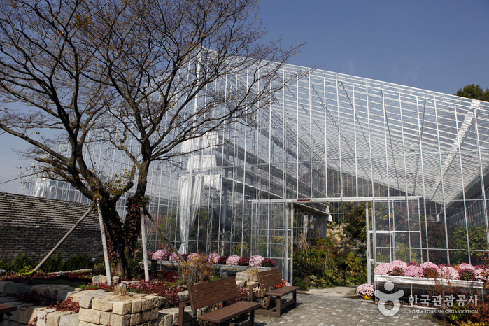 카페테리아, 연구동, 꽃들의 집, 폭포, 자이언트벤츠, 솟대공원, 암석원, 식물시장 등