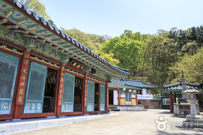 통일이 하루빨리 이루어지기를 기원한다는 이 절에는 태극기가 매일 게양되고 있다. 울창한 숲 사이로 바다 위에 외항선이 들고 나는 풍경을 바라볼 수 있어 답답한 가슴이 후련해지는 곳이기도 하다.
