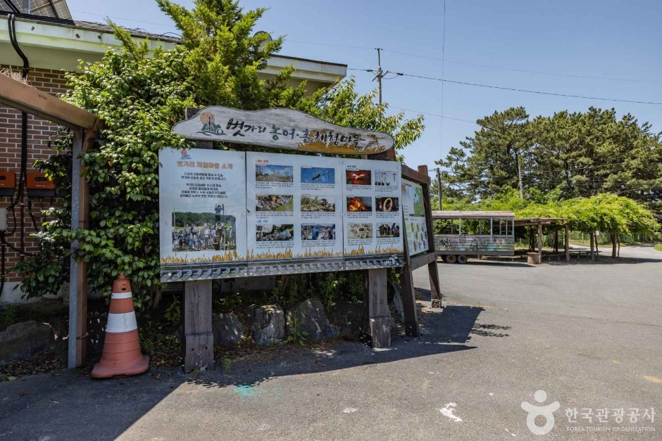 서해바다와 가로림만 사이에 길게 뻗은 이원 반도에 자리 잡은 이 마을은 우리나라에서 유명한 농촌체험마을 중 하나이다. 언뜻 보면 들녘이 많아서 농사에만 의존하는 듯하지만, 그에 못지않게 어업도 활발한 반농반어의 바닷가 마을이다. 지금도 추수가 끝난 뒤의 논에 볏가리를 세우는 풍속이 남아 있어 볏가리마을로 불리게 됐다. 이처럼 농어촌의 풍속과 풍경을 모두 지니고 있으며 농촌체험, 갯벌체험을 동시에 할 수 있다. 마을 서쪽의 바닷가 절벽엔 구멍바위가 있는데, 이 구멍을 통과하며 소원을 빌면 이뤄진다는 전설이 있어서 옛날부터 아들 낳기를 바라는 아낙네의 발길이 잦았다고 한다. 또한, 이 구멍바위로 바라보는 일몰이 아름답다.