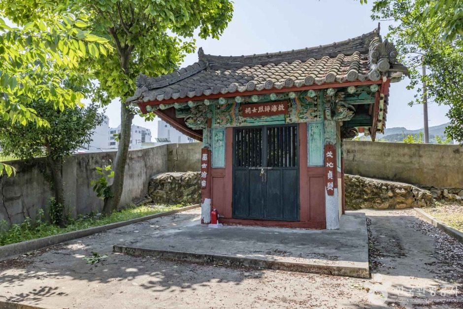 해평열녀사당은 통영의 대표적 열녀인 해평열녀의 굳은 절개를 기리기 위해 마을 사람들이 1887년 사비를 들여 지은 사당이다. 열녀비인 해평열녀기실비는 1932년 세워졌다.