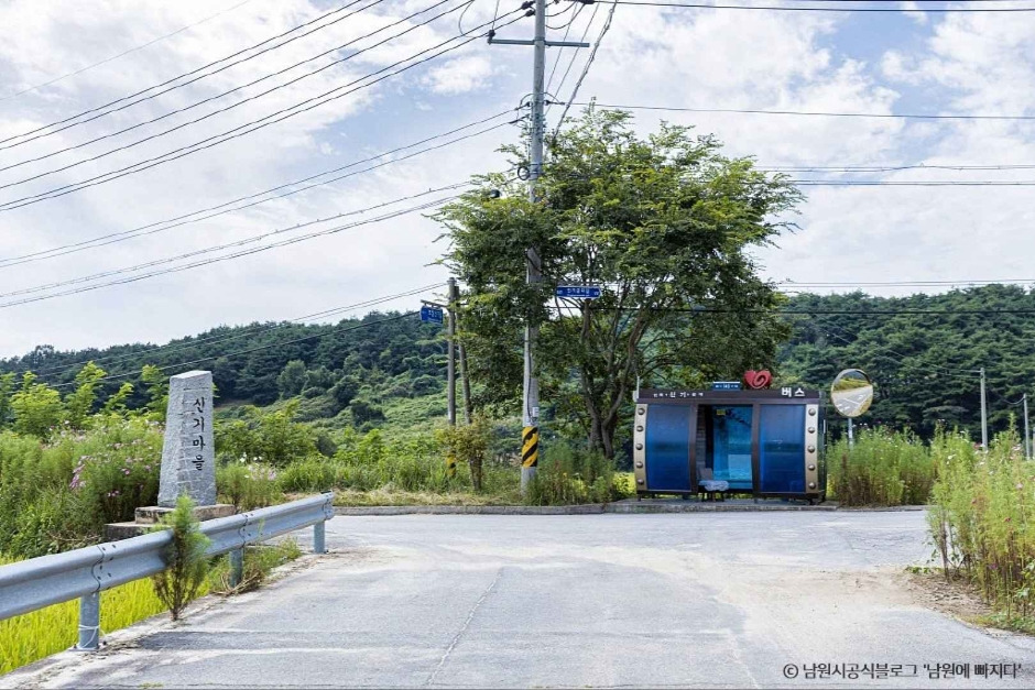 신기마을은 선조 28년(1595) 임진왜란 후 인동 장씨 장덕복이 이곳에 터를 잡아 마을이 형성되었다. 전란에 고통을 받다가 지리산의 기운이 이어지는 명당자리로 새 삶을 시작하는 터전이란 뜻으로 ‘새터(신기,新基)’라 하였다. 신기마을은 지형학적으로 와우형, 즉 소가 누워 있는 평화로운 정경이라고 한다. 초봉에는 운봉의 갑부 박희옥이 만든 별장이 있었다. 이곳에서 많은 명창 소리꾼들을 불러 판소리를 감상하고, 또 그들을 적극적으로 후원하여 판소리 발전에 크게 기여하였다고 한다.