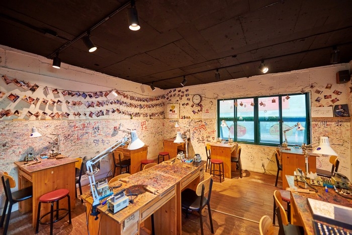 순은 99.9%의 재료로 반지, 팔찌, 목걸이 등 액세서리를 만들 수 있는 이색 테마 카페다. 반지의 경우 마음에 드는 디자인의 반지를 고른 후 망치질로 사이즈 조절하기, 핸드 피스로 표면 다듬기, 광내기 등의 과정을 거치면 나만의 반지가 완성된다. 직접 만든 액세서리엔 원하는 문구도 새겨 넣을 수 있다. 오마이걸 아린의 단골 매장으로도 유명하다.