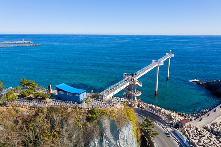 후포 등기산등대공원에서 출렁다리인 등기산 보행교를 지나 스카이워크까지 산책하기에 좋다.