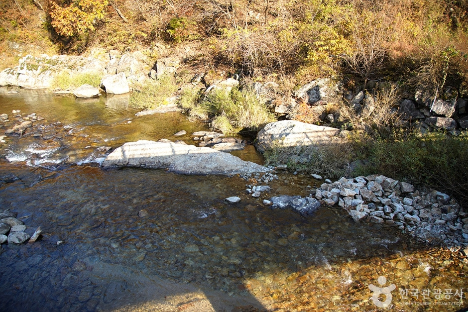 내촌면 광암리에서 발원하여 두촌면 괘석리를 거쳐 천현리에 이르는 10여㎞의 계곡으로 맑은 물과 기암괴석이 조화롭게 펼쳐져 있는 곳이다. 홍천 9경 중 7경에 속하며, 우거진 숲과 곳곳에 펼쳐지는 소와 너른 바위들이 어우러져 비경을 자랑하는 곳으로 내설악에 버금가는 아름다운 계곡이다. 봄에는 철쭉이 가을에는 아름다운 단풍이 갈대와 어우러지고, 여름철에는 시원해서 계곡 물놀이를 즐길 수 있다. 이 계곡에는 옛날 절터와 삼층석탑이 아직 남아 있으며, 이 삼층석탑을 옮기려 할 때 호랑이가 나타나는 바람에 옮기지 못했다는 전설이 전해 내려오고 있다. 용소계곡을 따라 생태 체험 탐방로가 조성되어 있으며, 대표적인 트레킹 코스로는 구름다리에서 시작하여 군유동까지 이어지는 코스가 있다. 이 길을 따라 걷다 보면 용소폭포, 삼층석탑, 암벽 조각 등이 나오며 계곡 곳곳에는 장소와 관련된 재미난 이야기 설명과 조형물들이 세워져 있어 휴식하며 잠시 쉬어갈 수도 있다.