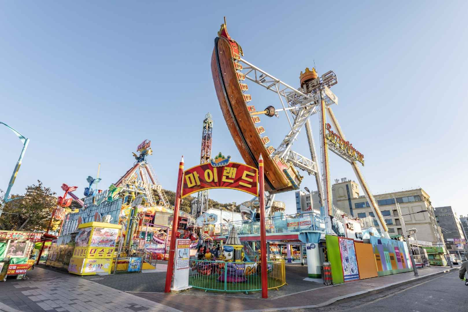 아찔한 스케일과 스릴 있는 90도 회전의 2층 바이킹과 하늘 위에서 빙글빙글 회전하면서 점프하는 점프보트, 아이들이 좋아하는 점핑점핑 등 다양한 놀이 시설이 있다. 소지품을 맡겨 둘 수 있는 물품 보관함이 마련되어 있고, 출출함을 달랠 수 있는 먹거리 판매 상점들도 길게 들어서 있다.
