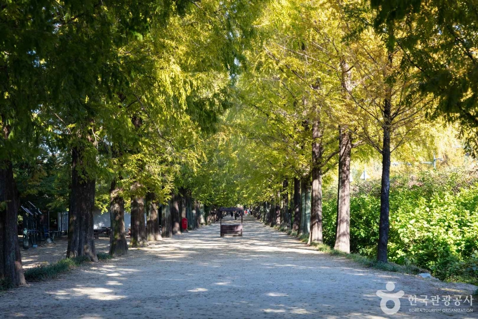 - 메타세쿼이아길 내 맨발로 걸을 수 있는 흙길에는 동반 불가
