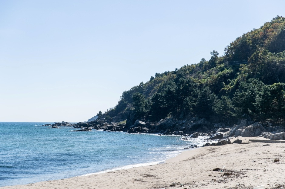 통일 안보공원의 동쪽에 위치한 총길이 400m의 조용한 해변이다. 희고 고운 백사장과 육지와 연결된 무송대가 있어 천혜의 절경을 이루는 곳이다.