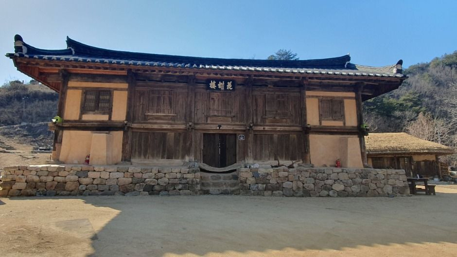 화수루라고도 불리던 조선시대 2층 누각 건물로 문화재명은 옥천재사이다. 옥천재사는 안동권씨의 영해 입향조 권책의 증손자인 권희언의 묘제를 수행하기 위해 지은 재사 건물로, 이 정자는 그의 다섯 아들들이 1676(숙종 2)에 건립하였다고 전해진다.