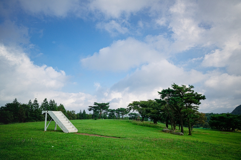 강호와 동네 꼬마들이 뛰어놀던 초원은 SNS에서 인생샷 명소로 꼽힌다. 명상바위라 불리는 절벽 끝 바위에 오르면 발밑으로 아담한 마을과 다랑논이 펼쳐지며, 언덕 위는 너른 잔디밭과 잔잔한 저수지가 어우러져 평온한 풍경을 만끽할 수 있다. 산책과 피크닉은 가능하지만, 캠핑 및 차박은 불가하다.