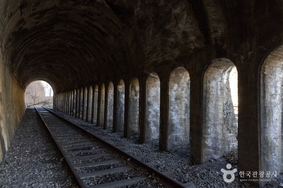 오래된 폐역인 불정역에서 조금 올라가면 끊긴 철로 끝에 자리한 불정터널은 자연스러운 느낌과 고요한 분위기가 인상적인 곳이다. 과거 경북선 철도 운행 시절에 사용되었던 터널로 문경관광사격장 표지판이 있는 곳으로 찾아가야 한다. 독특한 곡선과 내부 구조가 인상적이며 터널 내 조명이 없어 낮 방문을 추천한다. 햇빛이 터널 안쪽으로 들어와 입구쪽부터 그라데이션으로 어둠과 밝음이 섞이는 모습을 배경으로 멋진 사진을 찍을 수 있어 오전 또는 이른 오후에 여행객들이 많이 방문하는 곳이다. 공간이 협소하고 방문 후 나갈 때는 안전 펜스 문을 꼭 닫고 야간 방문은 금하며, 공식 관광지가 아니기 때문에 관람과 사진 촬영에 주변 주민들이 방해되지 않게 주의가 필요하다.
