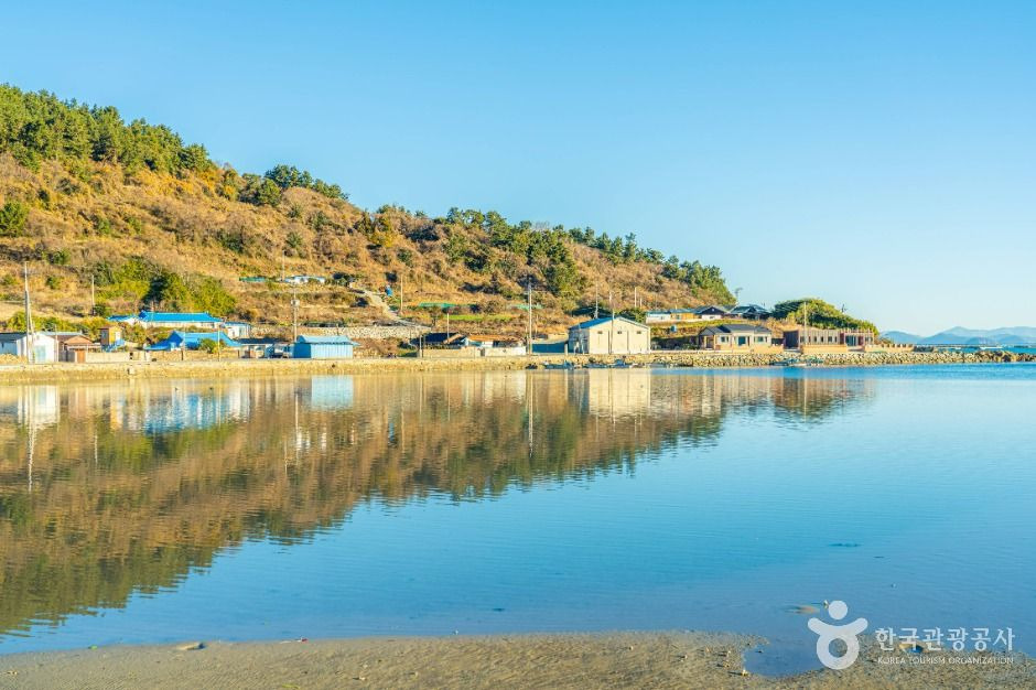 썰물때면 2km에 달하는 모래사장이 모래섬이 되고 물이 차면 마을 앞까지 물이 차는 자연의 신비를 감상할 수 있다. 간조시 드러나는 수만 평의 은빛 모래사장에서 가족이나 연인끼리 백사장에서 체험할 수 있는 조개잡이는 또 다른 추억을 간직할 수 있다.